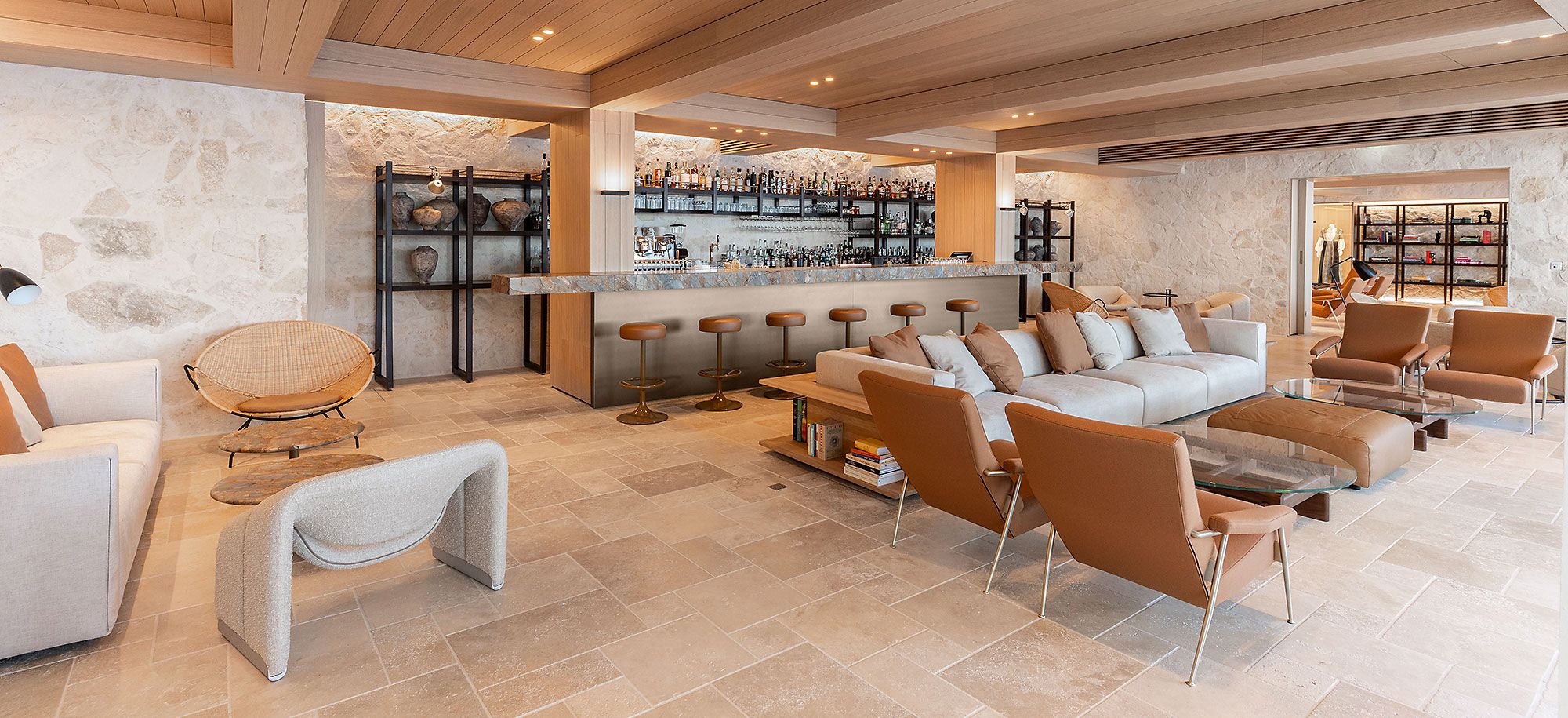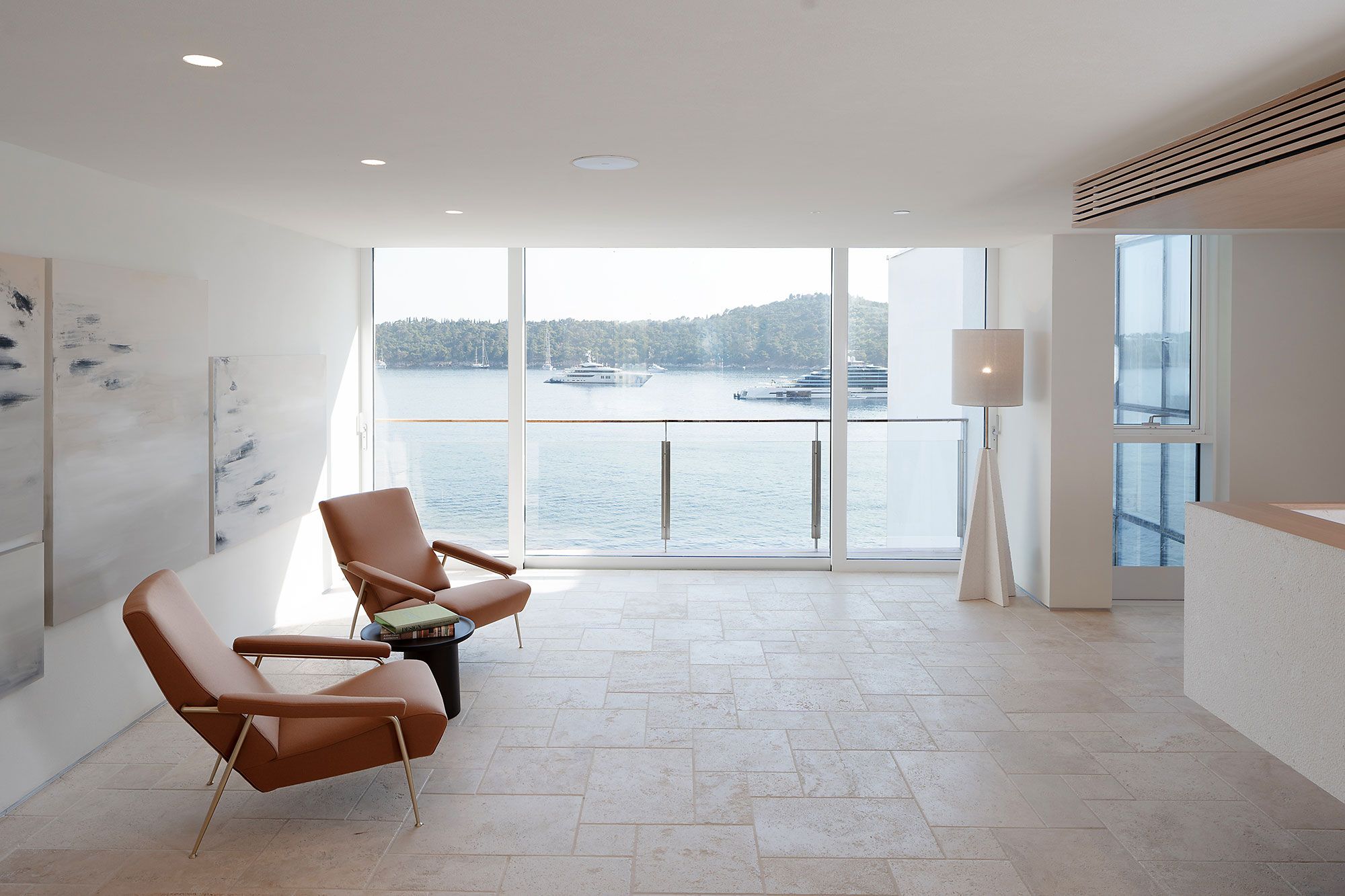 The contemporary design of the interior with soothing elements of wood and stone is in harmony with local surroundings.