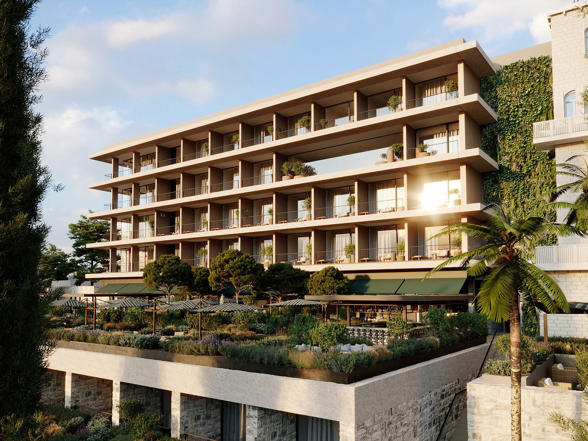 Its rooms and suites are adorned with richly textured Mediterranean fabrics and framed by private terraces overlooking Lokrum Island and the ancient rooftops of the Old City.